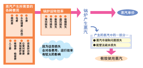 綜合了有效使用蒸汽(生產設備實際所利用到的蒸汽)和各種費用(蒸汽產生所需要的各種費用),